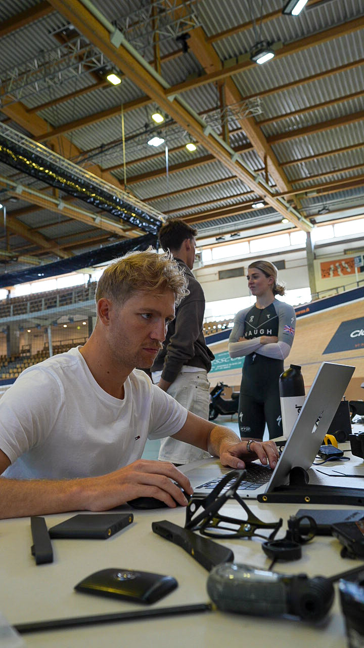 This is a session to optimise your overall performance on the bike, by advising you on the best equipment choices and position changes to minimise your aerodynamic drag coefficient (CdA) and rolling resistance, while maintaining power output. Velodrome testing offers a controlled test environment where the effect of small changes to position and equipment can be measured and quantified. With higher data quality, individual test runs can be shortened relative to outdoor testing, and more setups can consequently be tested in a single session. When you book a session you will receive a form to detail your current equipment and position setup, followed by a conversation to plan an individual test plan tailored to your specific needs and goals. We have a number of equipment options available for testing (different race suits, helmets, aerobar extensions, calf sleeves etc.)
